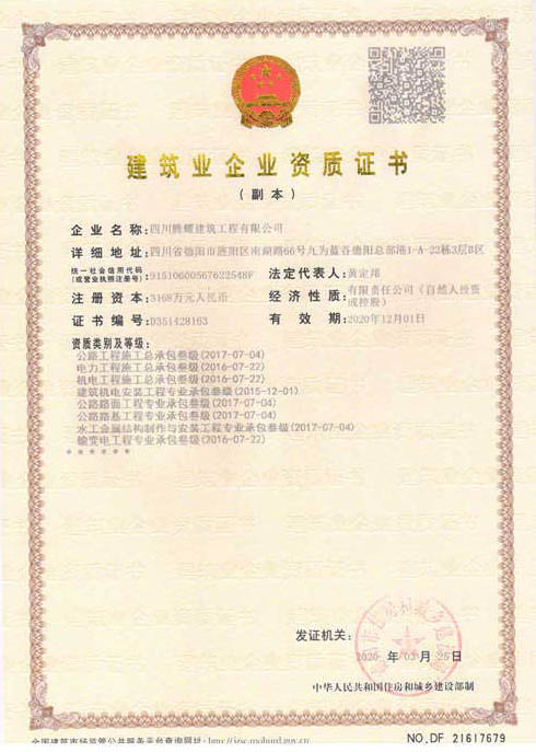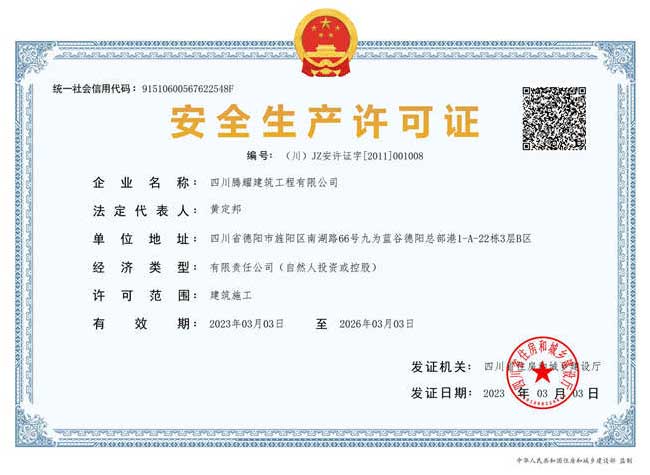 四川騰耀建筑工程有限公司  地址:四川省德陽(yáng)市旌陽(yáng)區(qū)南湖路66號(hào)九為藍(lán)谷德陽(yáng)總部港1-A-22棟1層  電話:0838-2507855